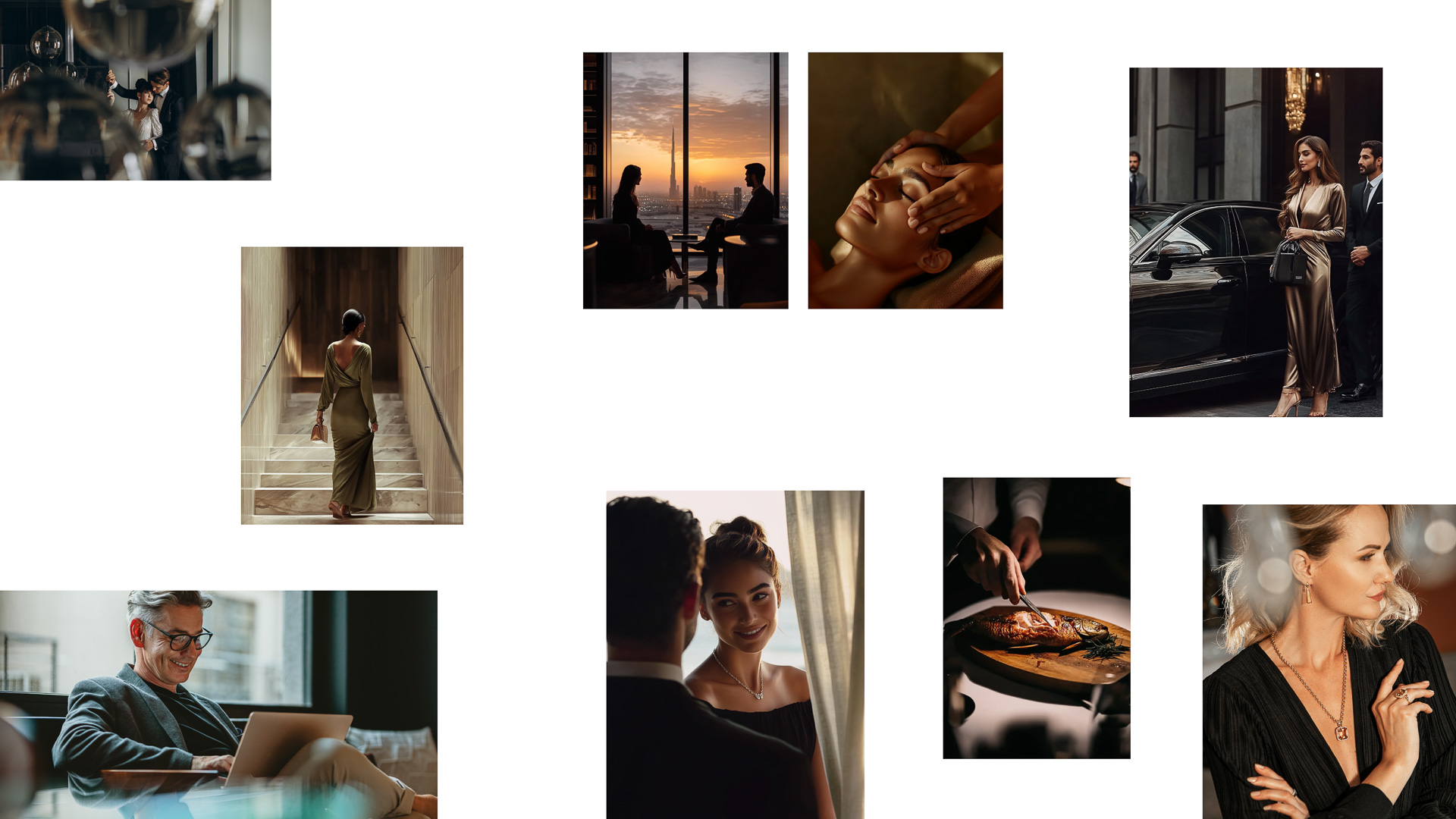 Urban elegance distilled into colour: a strategic gradient that captures the tower's architectural poetry, from the gravitas of 'Starry Dubai Night' to the luminosity of 'Lighting Gold'.